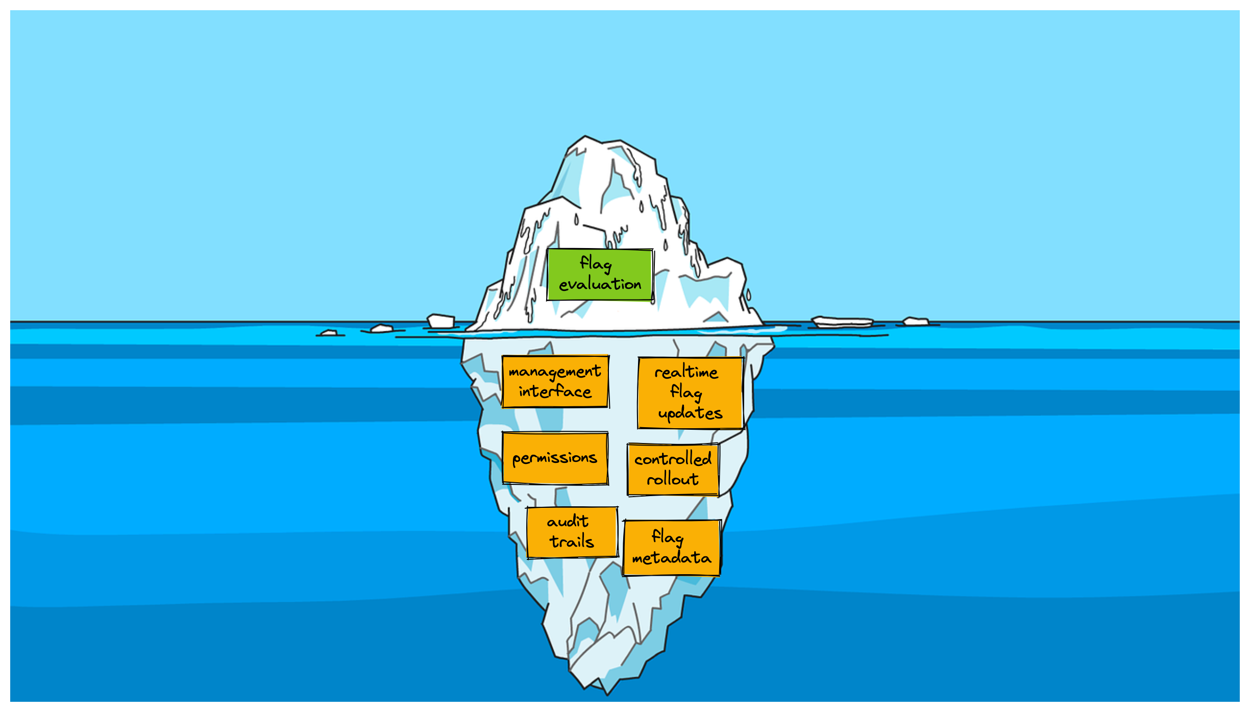 When I talk to people about adopting feature flags, I often describe feature flag management as a bit of an iceberg. On the surface, feature flagging seems really simple, almost trivial. You call a function to find out the state of a flag, and then you either go down one code path, or the other. However, once you get into it turns out that there's a fair bit of complexity lurking under the surface.